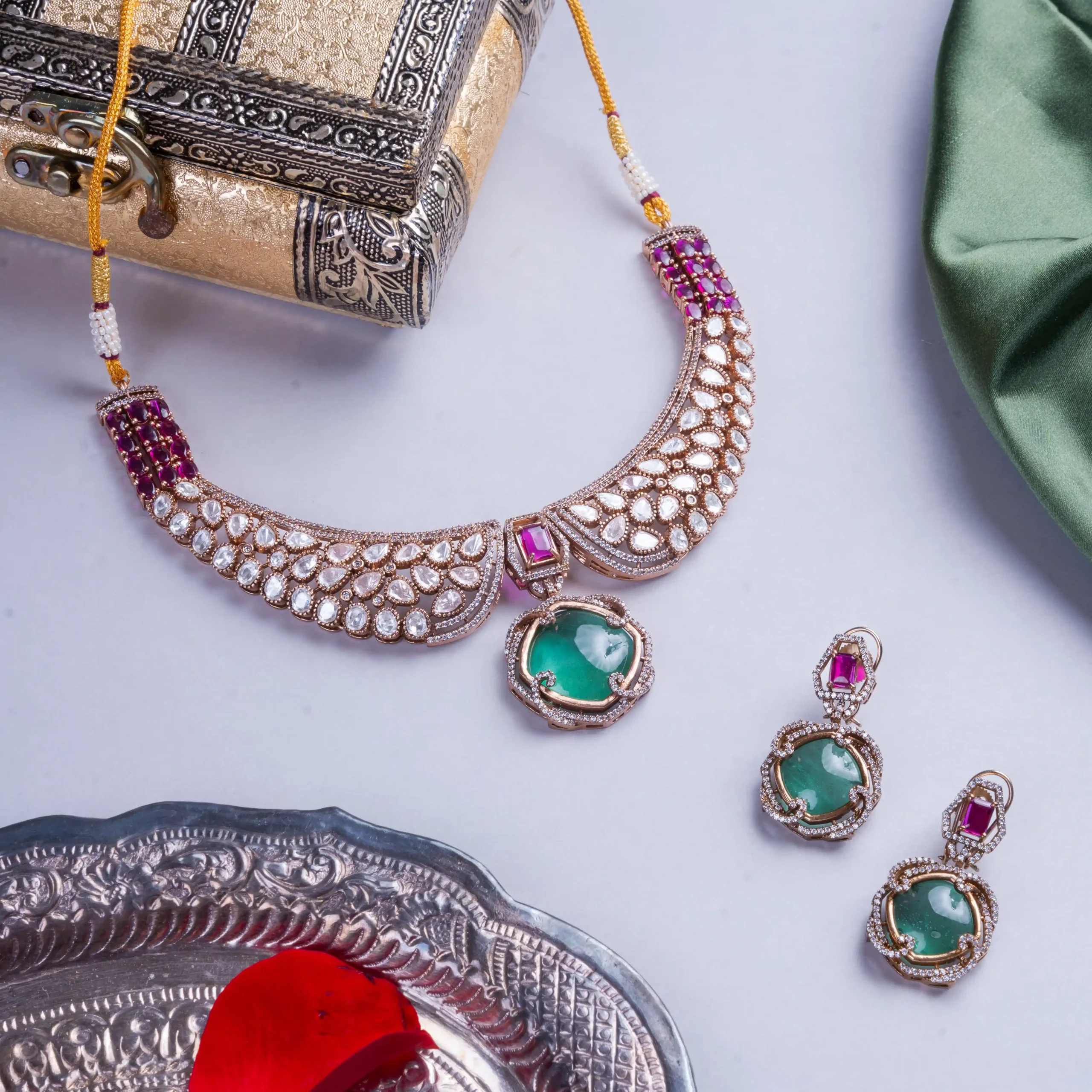 - Composition : Polki stones, Ruby stones, Emerald stones, CZ stones, Gold-plated alloy